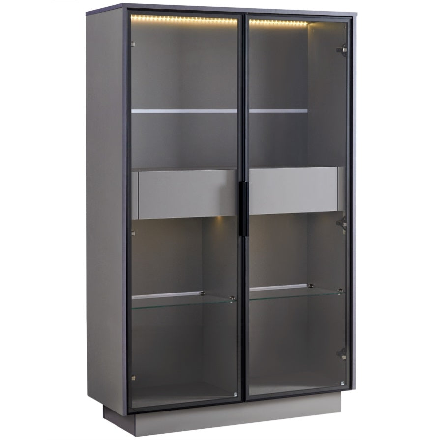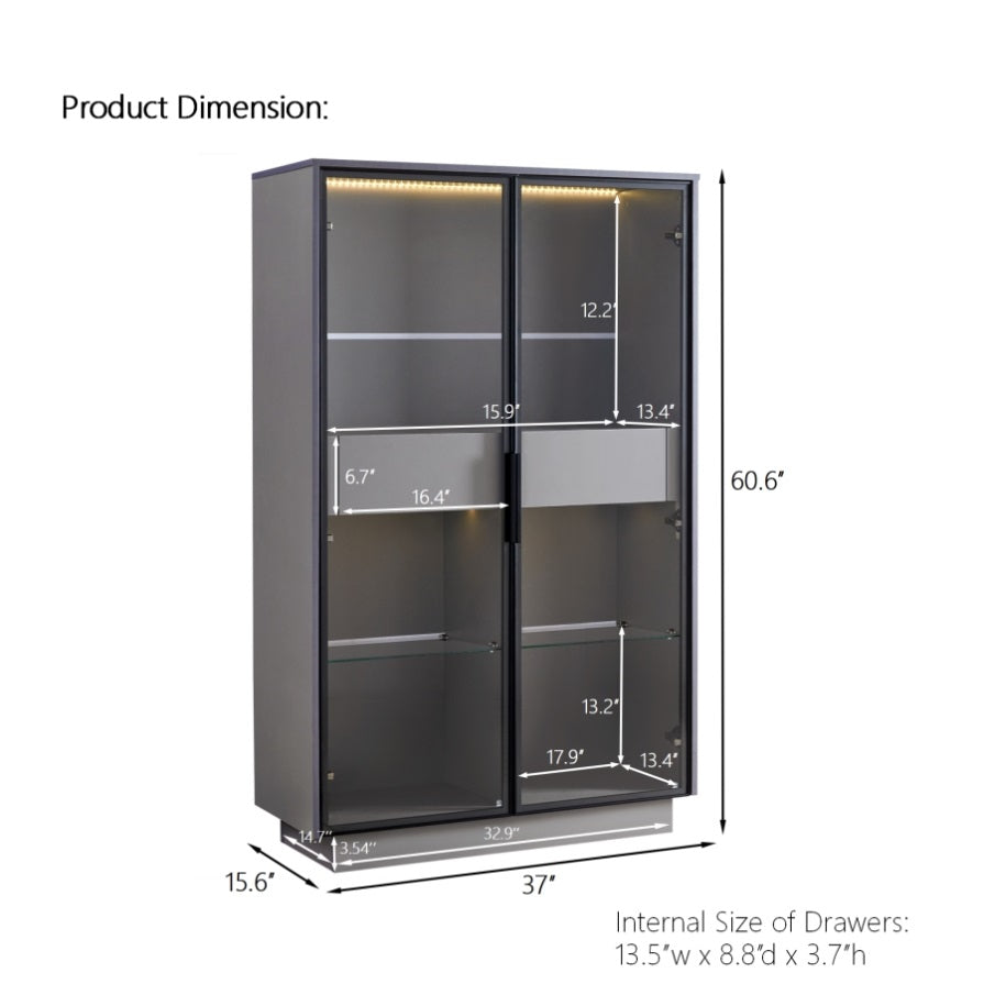 60.6'' Tall Display Cabinet with Tempered Glass Door, LED Lighting, Two Drawers, Modern Style N845P261799E