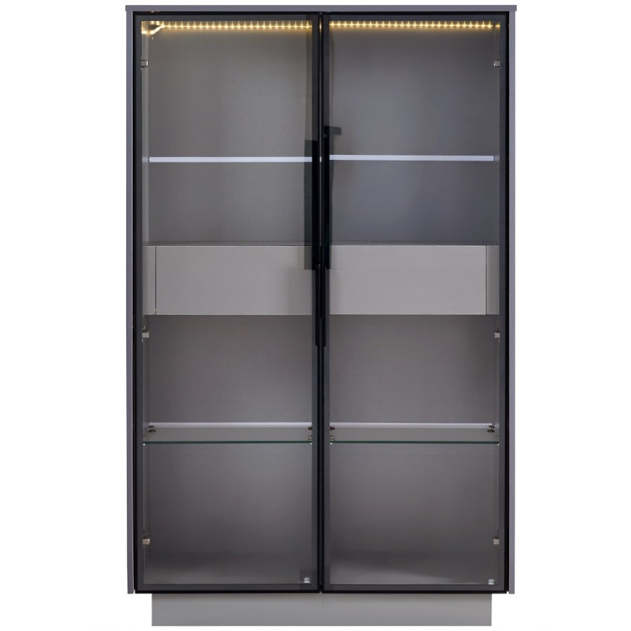 Elevate your living space with this sleek display cabinet. Crafted from premium MDF, it features a minimalist design, ultra-narrow glass doors, and two tempered glass shelves.