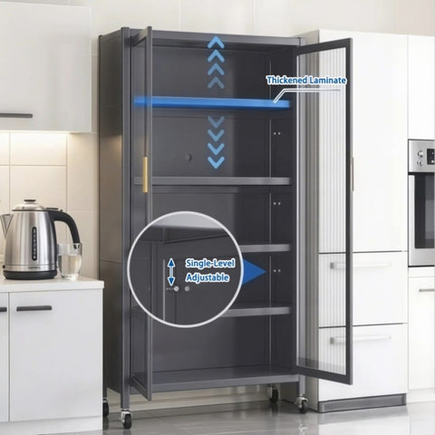 Multi-Scene and Multi-Functional Application: This food pantries cabinets is designed with doors and multi-layer storage racks, which can be flexibly adapted to a variety of scenarios - used as a tableware cabinet, wine cabinet, acrylic display cabinet, bookshelf, filing cabinet, etc. The modern and stylish appearance adds texture to spaces such as kitchens, living rooms, and studies.