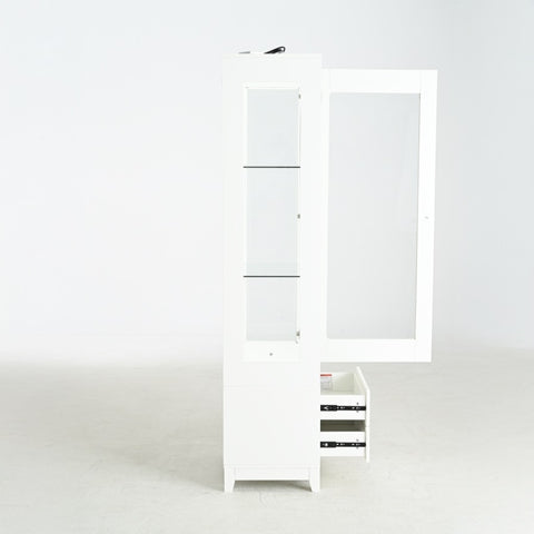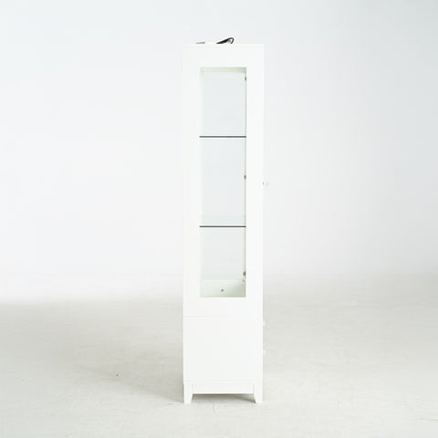 Adjustable Glass ShelvesTool-free adjustable glass shelves in display cabinet allow instant layout changes. Sturdy frames adapt bookshelves with cabinet to books, collectibles, and more.