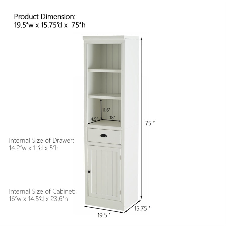 Flexible Storage CapacityThe shelf measures 19.5" W x 75" H x 15.75" D, offering a large storage capacity. Its compact size makes it suitable for any room in the house where storage is needed, such as the living room, bedroom, bathroom, etc., allowing you to neatly organize various items and enhance the storage efficiency of your home.