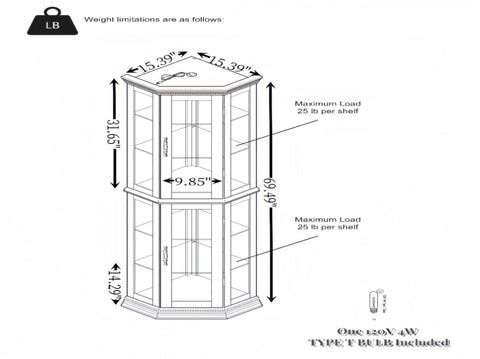 Cabinet Storage: This corner curio cabinet has 4 adjustable tempered glass shelves, offering ample space for your collectibles. The adjustable shelves allow you to display your items in the best way and can be removed to accommodate taller items."