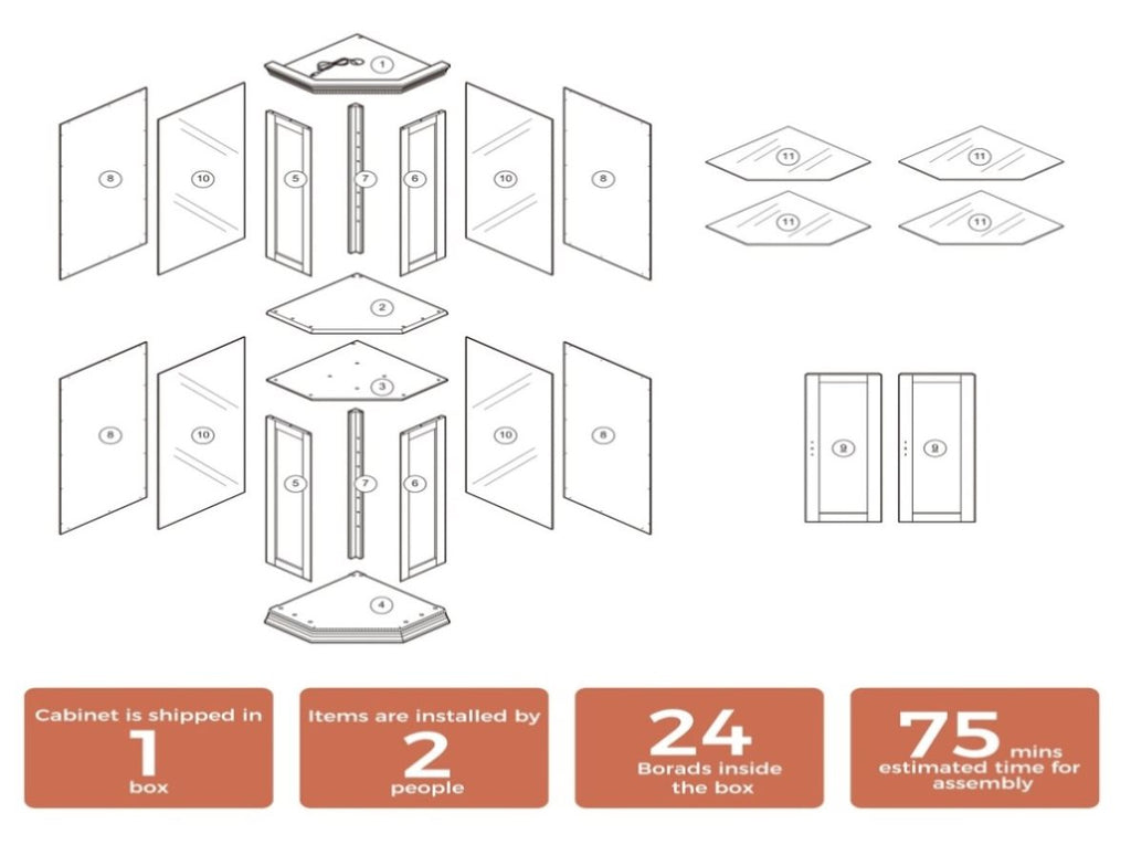 Looking to display your cherished collectables? With curio cabinets, the beauty is in the mix. They are perfect for displaying a range of sentimental items. Bring classic elegance to your room by displaying your favorite items inside the corner curio cabinets,which offers four removable tempered glass shelves to perfectly showcase collections of books, framed photographs, fine china, crystal glassware ect. Corner glass cabinet An elegant corner curio cabinets with glass doors and shelves To hone in on your one-of-a-kind decor style with our wood curio cabinets Of you have a lot of items to display but not a lot of space, Our Lighted Curio Cabinet is a great option because it fits right into a corner. Classic Design Door has an elegant decorative handle. Curio cabinet has a decorative beaded molding that adds style. 2 tempered glass doors allow easy viewing of contents. Tempered glass shelves hold 25 lbs each and won't easily break. Includes anti-dumping belts for maximum stability.
