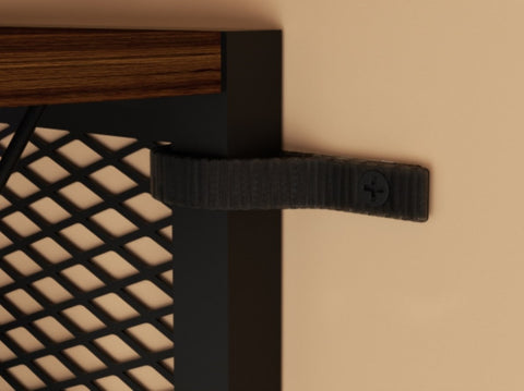 Safety Design: The iron mesh design on the back of the shelf prevents items from slipping; the cabinet door is an iron mesh door with a magnetic door buckle, which can be firmly closed. The top also includes two wine glass holders, which increases the practicality and aesthetics of the product.