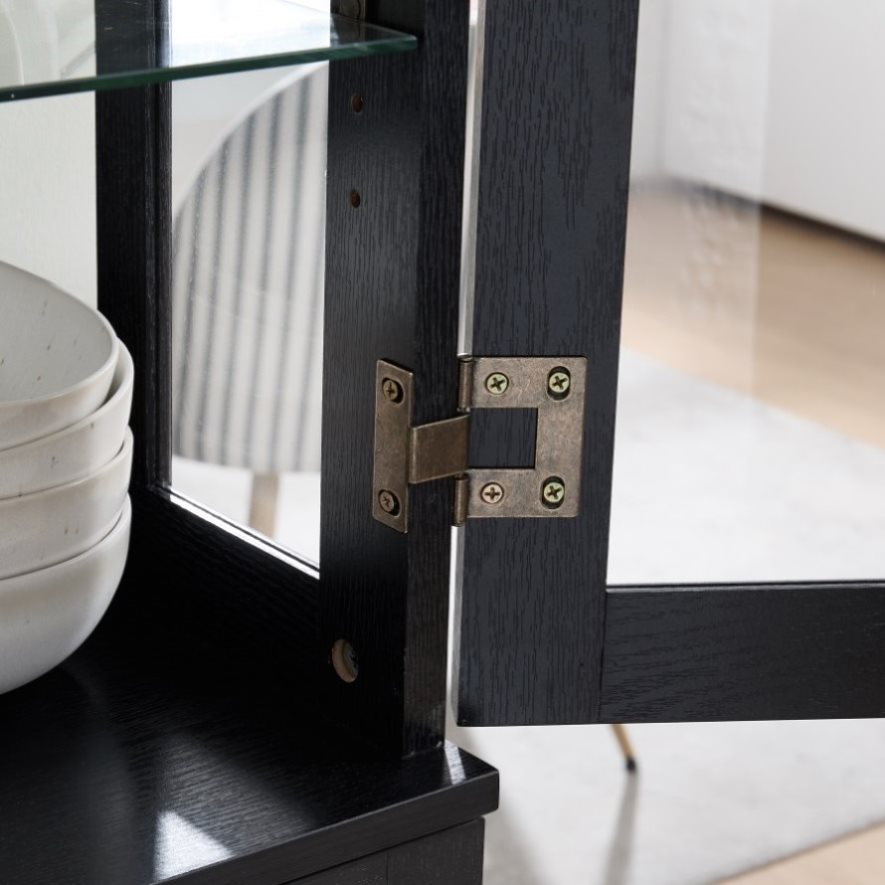 Adjustable Shelving: This versatile glass cabinet offers adjustable height shelves, allowing you to customize the storage space for books, wine bottles, or decorative items, ensuring that it meets all your organization needs.