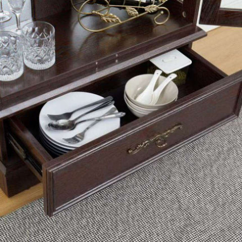 American retro style Glass cabinet:Crafted with curved legs 、a big drawer and metal handles, this cabinet exudes a touch of classical beauty and vintage charm. Its timeless style allows it to seamlessly fit into any corner, bringing an eternal sense of elegance to your space.