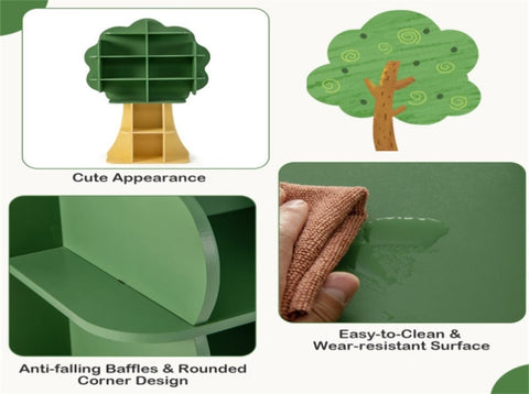 ● Cute Toddler Bookcase: Dinosaur/giraffe/unicorn/tree shape and bright color encourage kids to read books and organize their items.      Moreover, its cute appearance also makes it a fun addition to kid's room, play room, reading corner, kindergarten, etc.