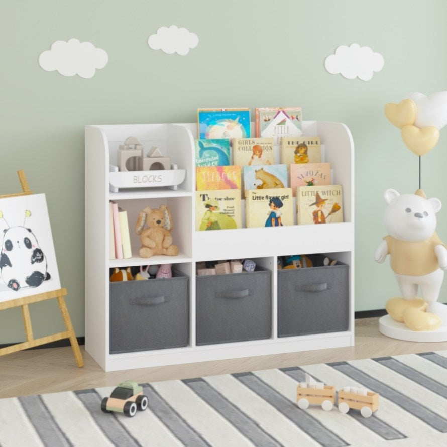 Kids Bookcase and Bookshelf, Multifunctional Bookcase with 3 Collapsible Fabric Drawers, Bookcase W808127602