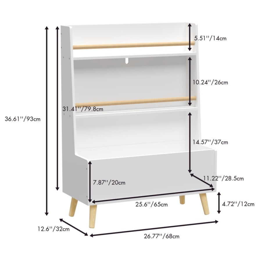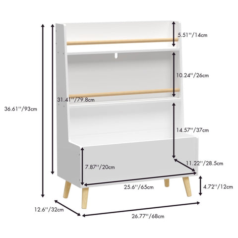 Multi-purpose:This bookshelf has two levels of shelves and one level of toy storage bin, allowing your children to display their books and store toys, etc.