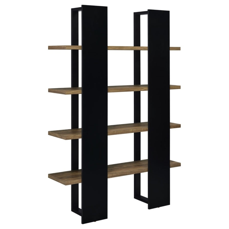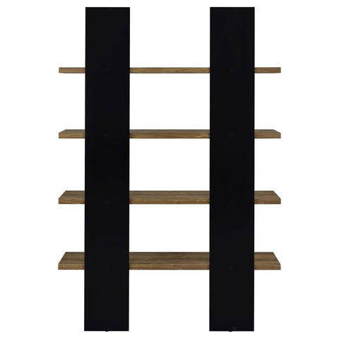 Stately with open and airy shelves, this contemporary bookcase features a two-tone finish and four extended shelves suspended from a plank-like frame. Perfect for a modern home office space or a living room library, this bookcase allows you to showcase anything from family photos to entire collections of decor and books.