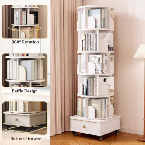 360-Degree Rotating Design: This bookshelf features a unique rotating mechanism that allows for easy access to all your books and decorations from every angle, making it both functional and stylish.
