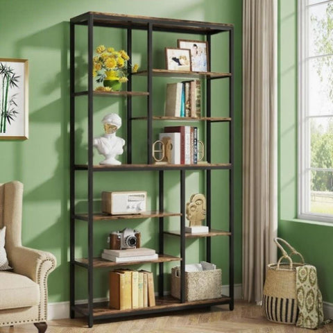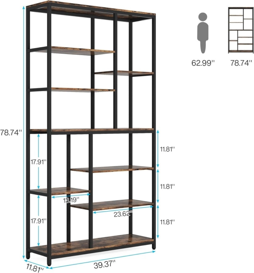 • Superior Shelving: Robust and well-crafted, this tall bookcase combines a heavy-duty metal frame with a high-grade rustic particle board. It ensures sturdiness and stability and can bear considerable weight without deformation