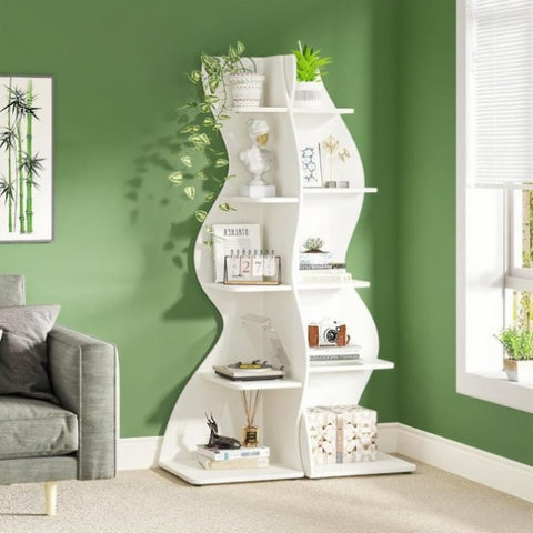 Introducing our newest product - a sleek and modern 5-tiered shelving unit, perfect for any corner of your home or office. With its all-white finish and unique sea grass-inspired design, this shelving unit is both stylish and functional.