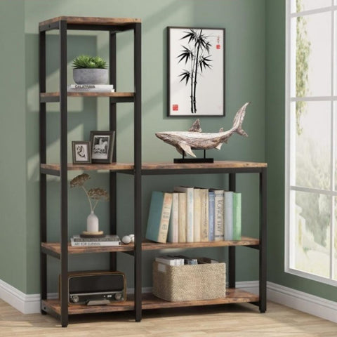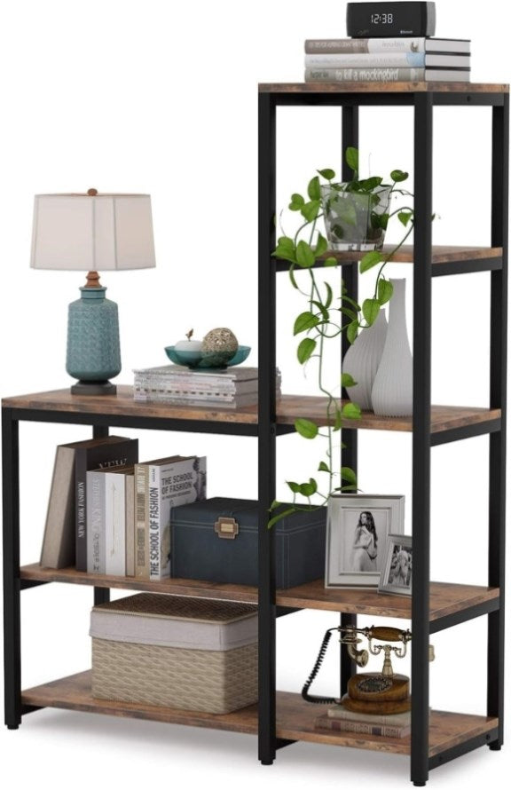 5-Tier L Shaped Bookshelf: This stepped bookshelf features five tiered structure that provides plenty of storage space for displaying books, vases, crafts, photo frames, potted plants and other knickknacks.
