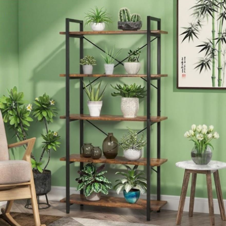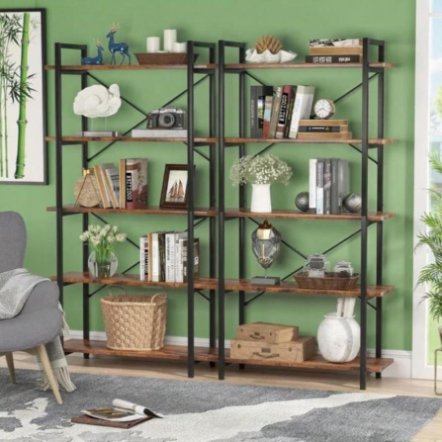 【Industrial Rustic Style】Clean design meets rustic industrial style, this 5 shelves bookcase lends a touch of industrial-chic look and classic beauty to your room, fits perfectly with almost all other furnishing items.