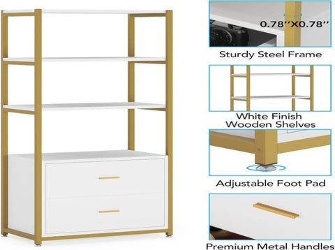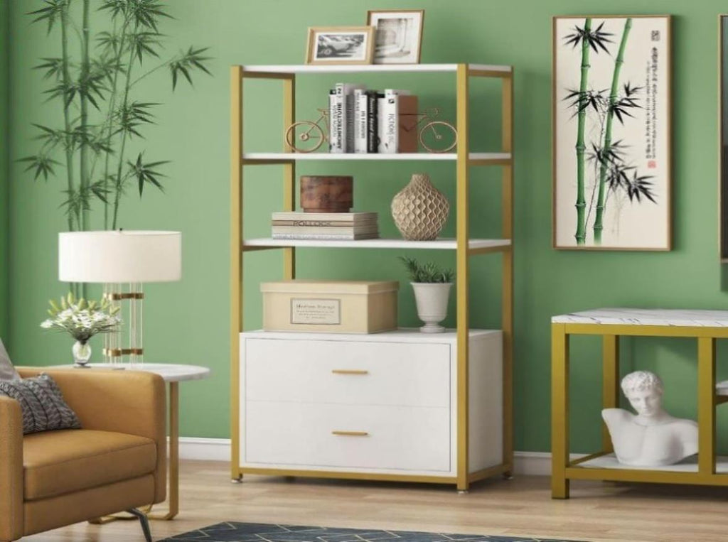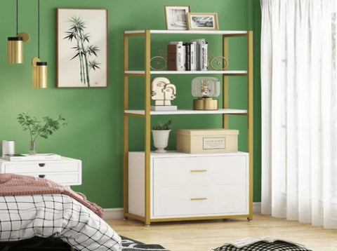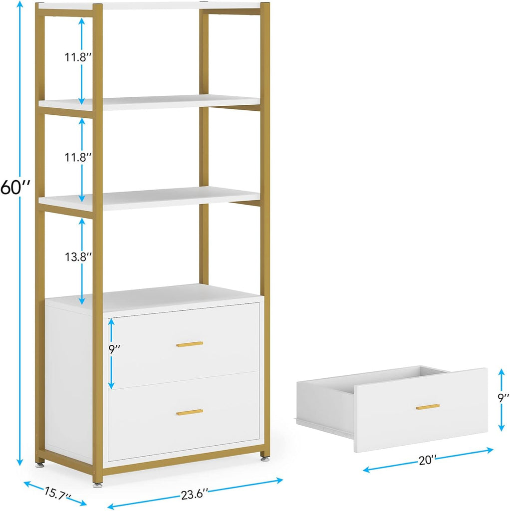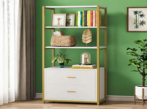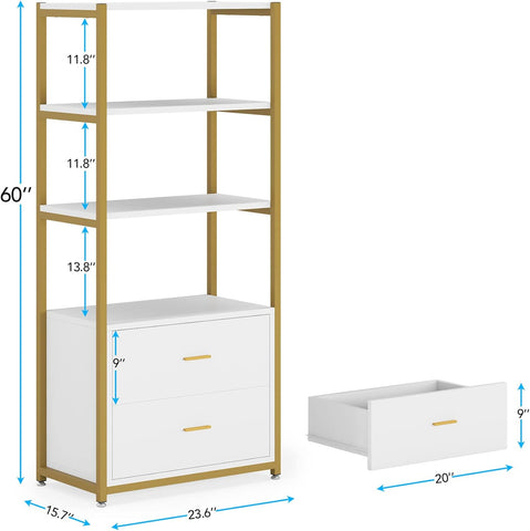 [ 2-Tier Drawer Storage ] - [Important information: Please check the drawer size before buying. This is not a filing cabinet and cannot accommodate A4, F4, letter size, and legal-sized suspension files.] Designed to meet diverse storage demands, the Tribesigns storage bookcase with 2-tier large drawers provides a private space to preserve your important documents, letters, and favorite office supplies.