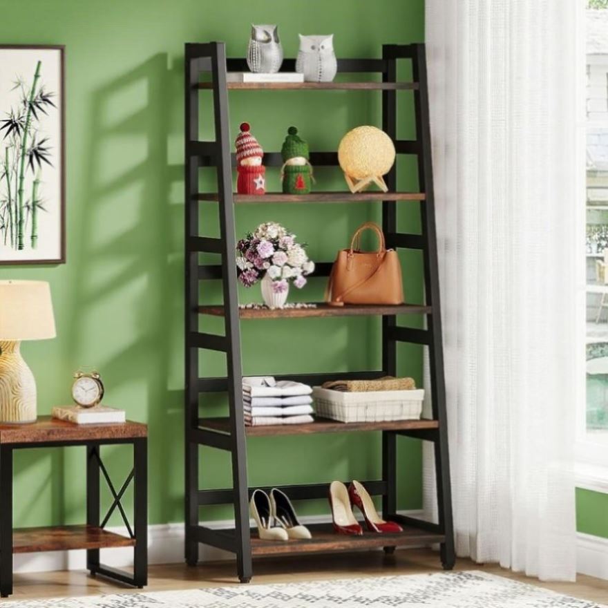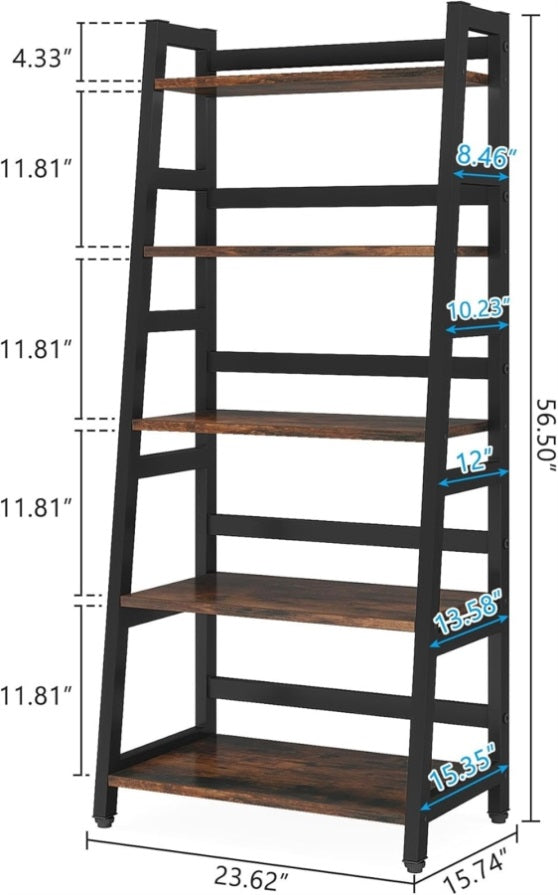 ✔ 【5-Tier Large Storage Capacity】 : Overall size: 23.6”L x 15.7”W x 56.5”H. The ladder storage shelf provides ample storage space for your books, knickknack, family photos, ornaments and more. Bottom shelf is 11inch in high which allows you to put baskets on it