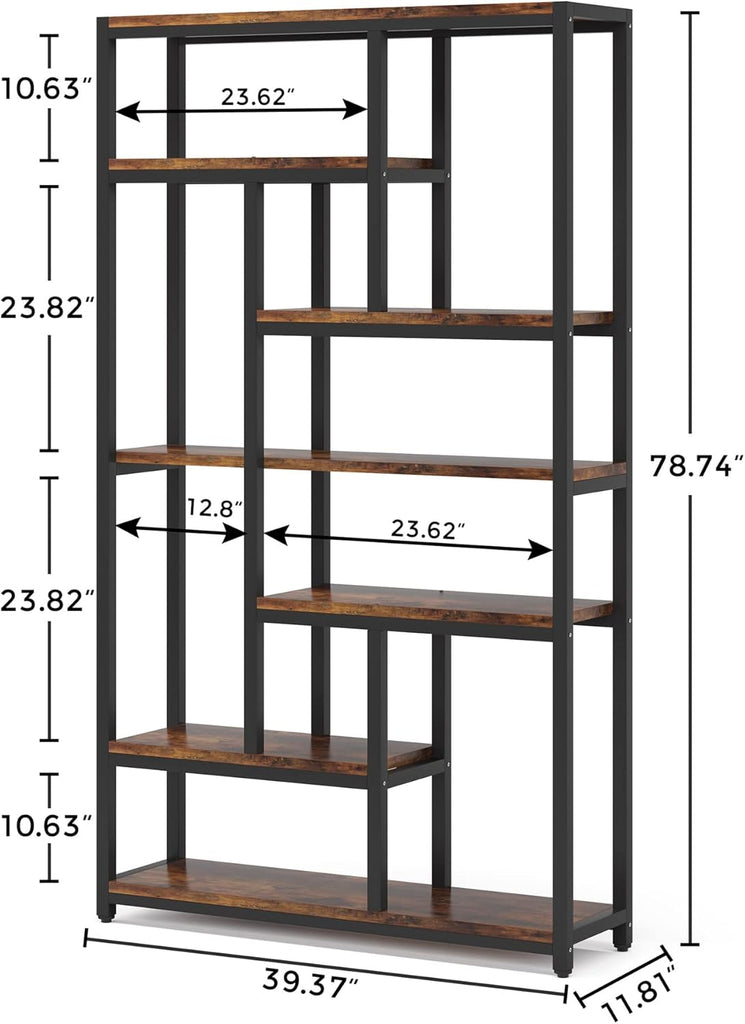 【Ample Storage/Display】Features 10 open shelves, this tall bookshelf provide plenty of space for storing and displaying your books, photo frame, pottery, collections, plant, etc. Maximize the vertical wall space and also help keep room tidy and organized