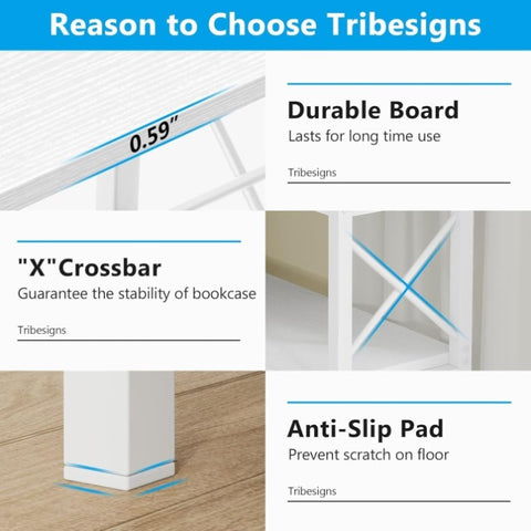 • ✔ 【RELIABLE CONSTRUCTION】 The X-bars on the sides and at the back not only prevent your books from falling off, but also provide extra strength and stability. Adjustable feet ensure this corner shelf organizer stands stably on uneven surfaces.