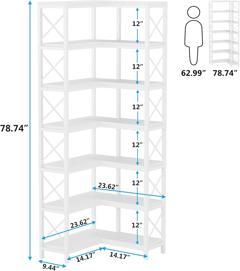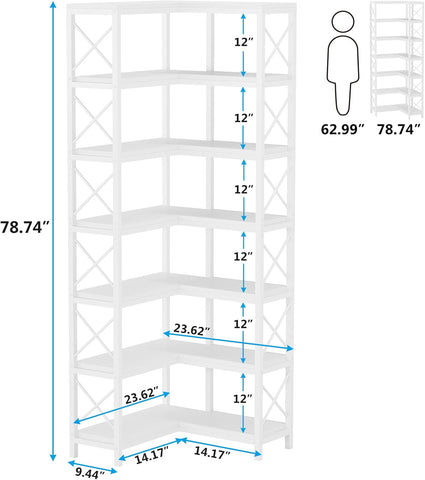 • ✔ 【MAXIMIZE CORNER SPACE】 Get the most out of that unused corner with this corner bookshelf. 23.6"L x 23.6"D x 79”H measurement fits nicely against the wall, it is used not only as a corner bookcase, but also used as a display rack and corner storage rack.