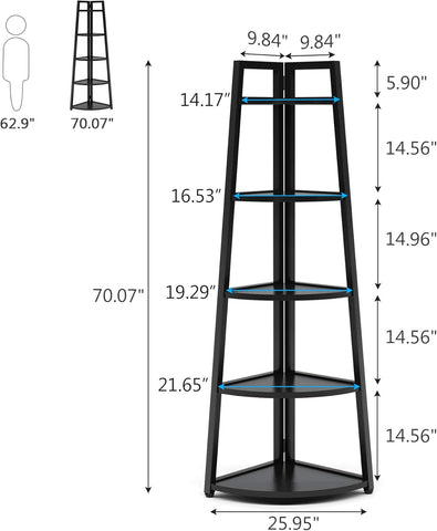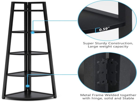 • Sturdy metal frame with 5 shelves holds up to 50 lbs per shelf
