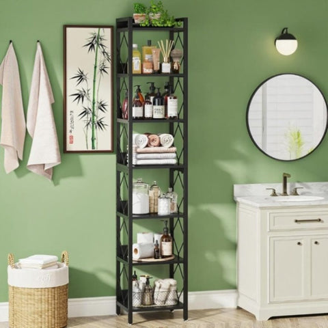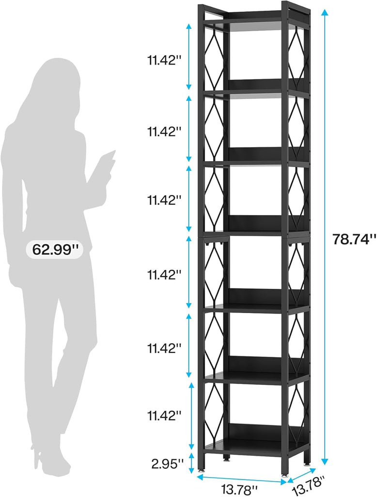 Multi-functional 7-Tier Tall Bookcase: Features 7 tiers of open shelves, providing ample storage space for you. This small bookshelf is not just for storing books, it can also be used as a display shelf for your favorite photos, and artwork, and as a bathroom or kitchen storage rack, making it a versatile piece of furniture that will meet all your storage and display needs.