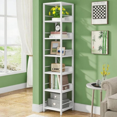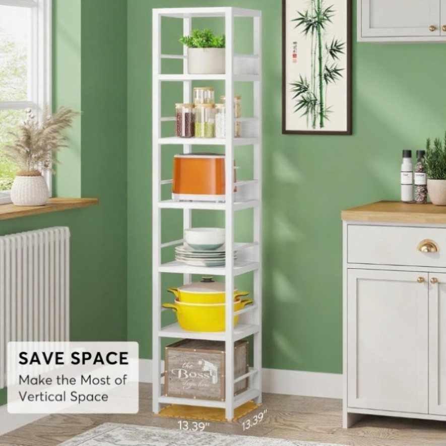 • MULTIPURPOSE CORNER SHELVES: Take advantage of every small or corner space of your room with this bookcase. Not only as a perfect corner storage shelves, this narrow tall shelf also works well as a etagere bookcase, display shelf, plant stand, kitchen storage rack, or household items storage. Perfect for small spaces