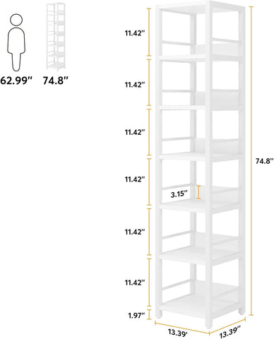 • SPACE SAVING DESIGN: With the dimension of 13.4’’ W X 13.4’’ D X 75’’ H, this corner bookshelf makes full use of any limited small spaces or corner spaces, turning unused spaces into storage. Maximize the storage space of small space without taking up too much spaces. This storage shelf fits anywhere easily, like living room, kitchen, bathroom, and stuff.