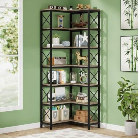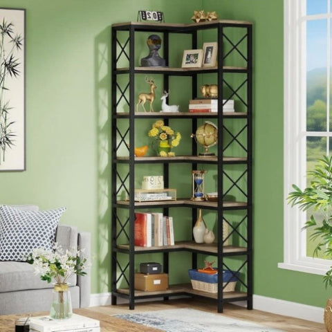 • ✔ 【ADD VISUAL CHARISMA】 Steeped in rustic style, this corner shelf with matte black frame, X-bars blends functionality and self-expression together, working as a real enrichment for the lovers of industrial design furniture. This 7-shelf bookshelf is a great solution to add extra space for living room, bedroom and small apartment.