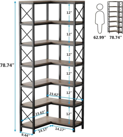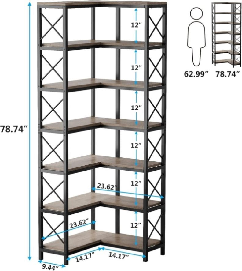 • ✔ 【MAXIMIZE CORNER SPACE】 Get the most out of that unused corner with this corner bookshelf. 23.6"L x 23.6"D x 79”H measurement fits nicely against the wall, it is used not only as a corner bookcase, but also used as a display rack and corner storage rack.