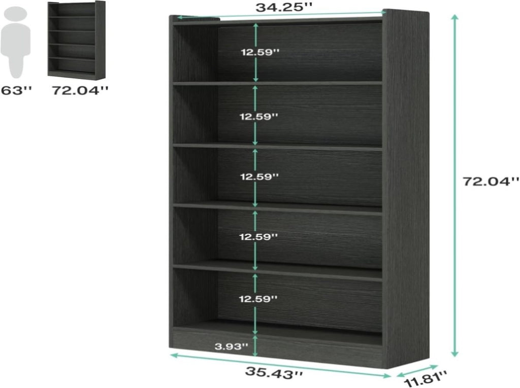 • 【Narrow Tall Bookcase】With a compact and space-saving design, this narrow and tall bookshelf with closed back allows you to access more storage and display space, easpecially suitable for any space in your home. Overall Size: 23.6" W X 11.8“D X 71.65”H