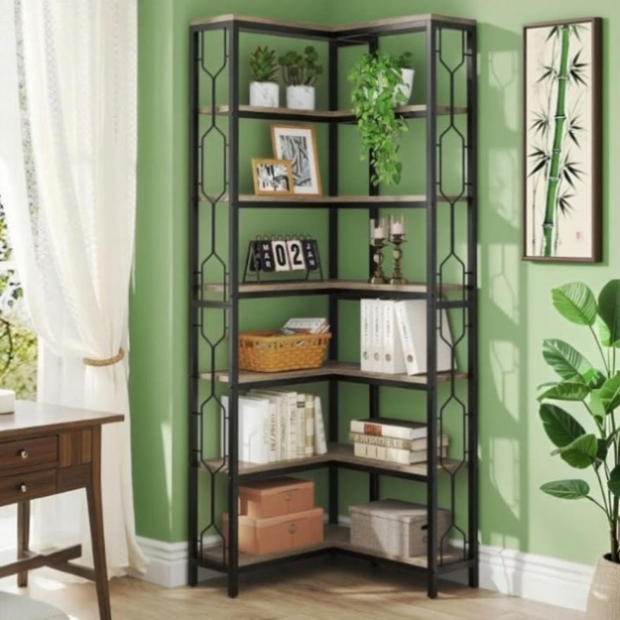 • Industrial Bookshelf: The corner shelf features sturdy metal and MDF construction with hexagonal accents for an authentic industrial look. It breaks the boundaries of traditional furniture sophistication