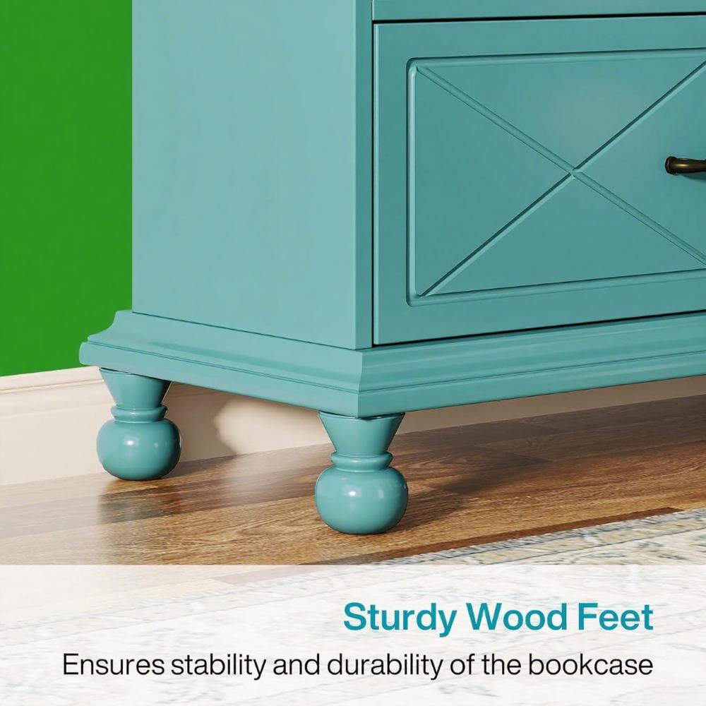 • ✔【Fit Your Life Style】 This freestanding bookshelf is just the right addition to your home office, bedroom, or living area with its X-cross front details and bun feet for plenty of coastal farmhouse charm. Finished in lake blue color and detailed with attractive hardle and crown molding, this modern bookcase is very nice to jack up your room decor taste.