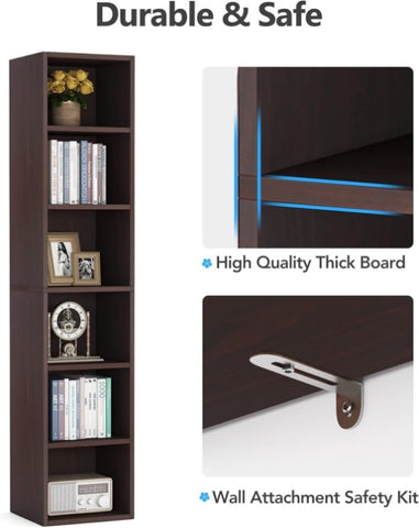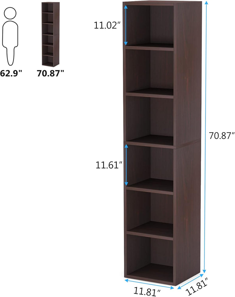 【Space Saving Design】With a compact design, this narrow and tall bookshelf allows you to access more storage and display space, especially suitable for any tight corner in your home. Overall size: 70.9"H*11.8"W*11.8"D