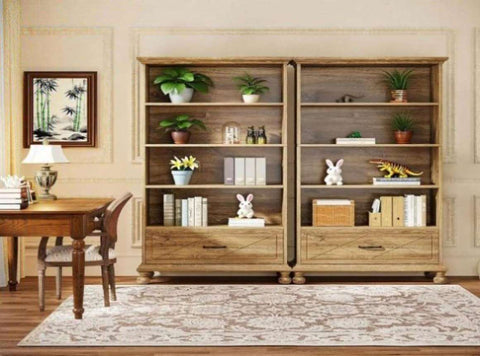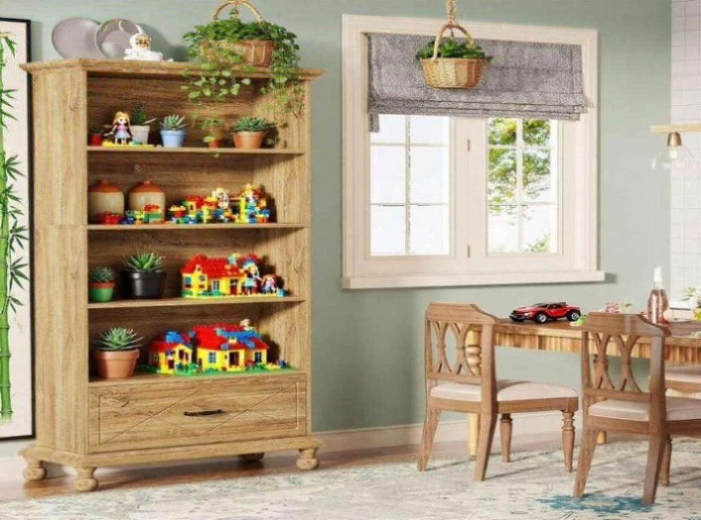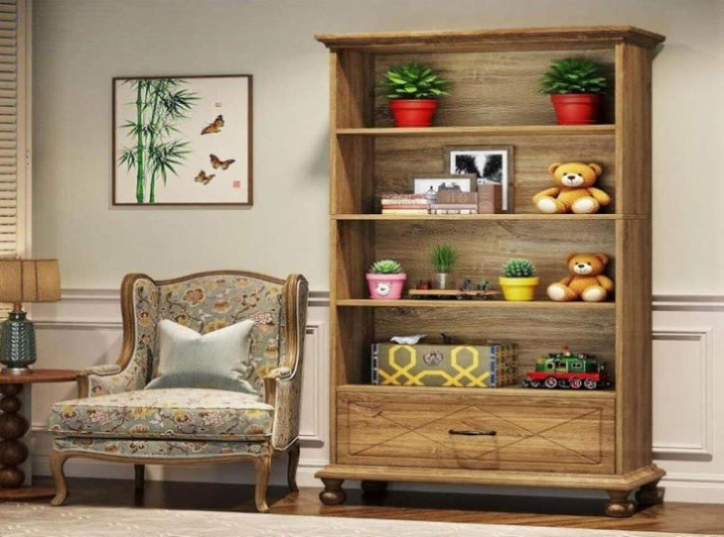 ✔【Store What You Need】 This large bookcase features 5 spacious shelvings to hold your favorite books, family photos, crafts and potted plants, perfect to store or display your necessities and decorations. A large drawer provides a concealed storage area for everything from media items to important files. This wood book shelf is the ideal solution to your storage woes.