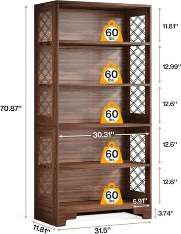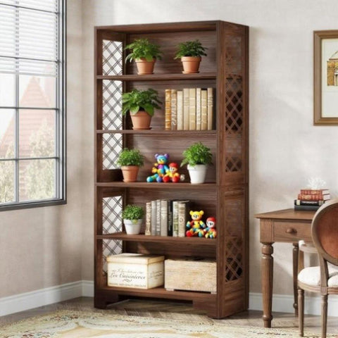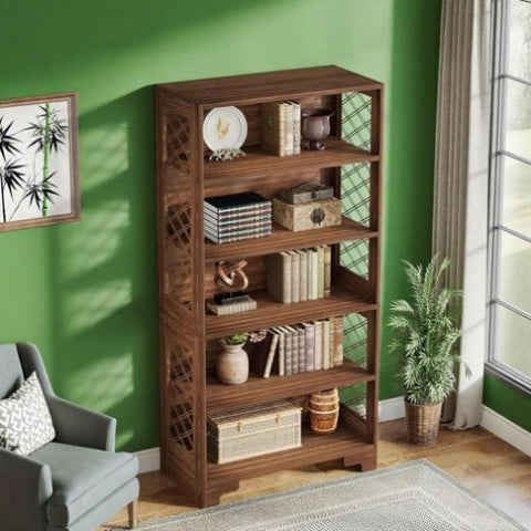 Ample Storage Space: This vintage bookshelf boasts a spacious 6-tier storage capacity, offering ample display spaces for your books, files, and treasured items, perfect for keeping your living room or office neat and organized
