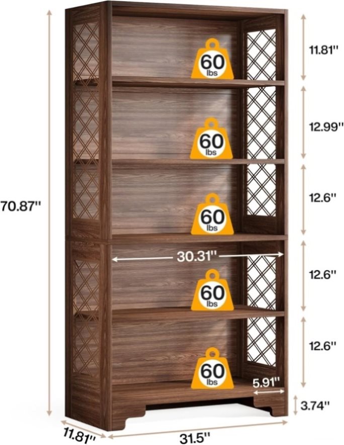 Reliable Storage Solution: Each shelf of this vertical bookcase can support up to 75 pounds, making it a decorative piece and a reliable storage solution for your personal library and other items