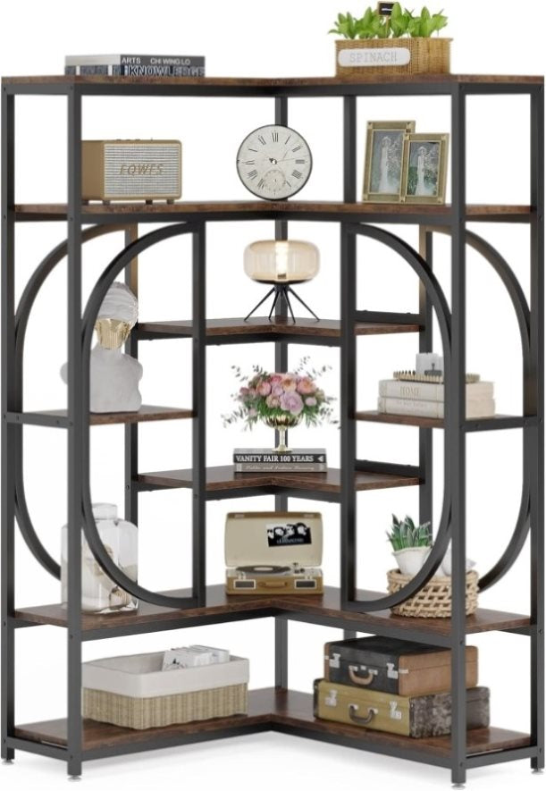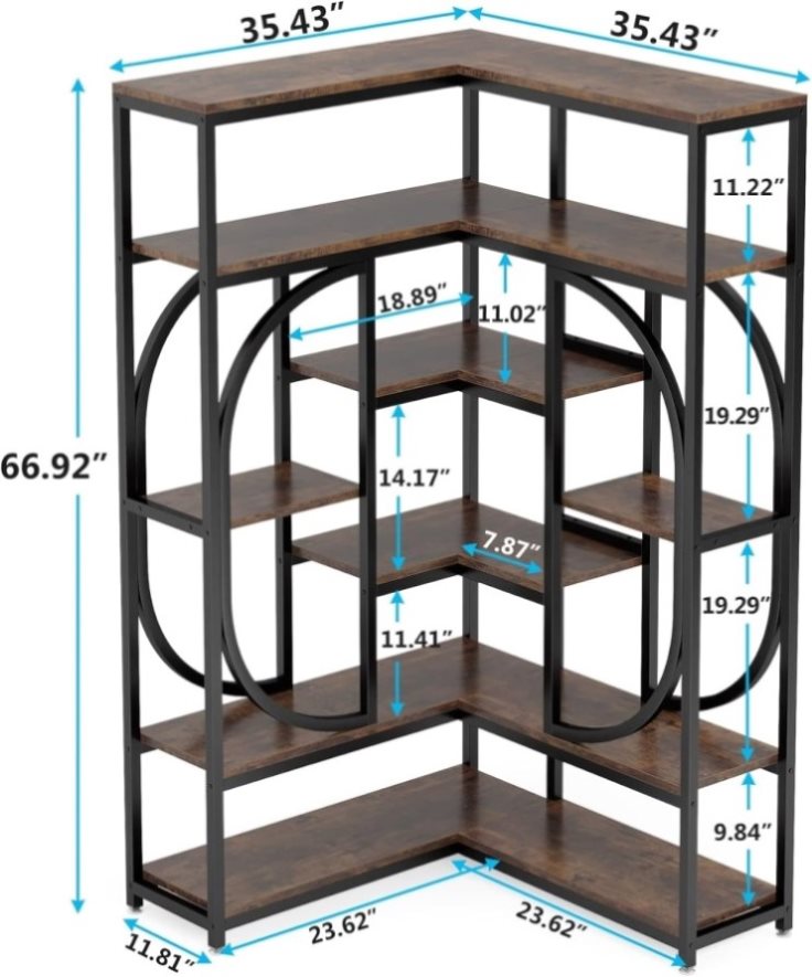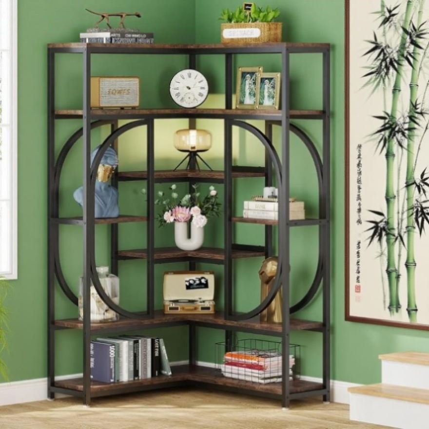 Large Corner Bookcase: Get an upgrade of the corner in your home with this corner shelving unit, its large size adds visual interest to the room and provides a unique way to display books, decor. The 90° right-angle design perfectly fits the corner and doesn’t occupy too much floor space, makes full use of the limit corner space