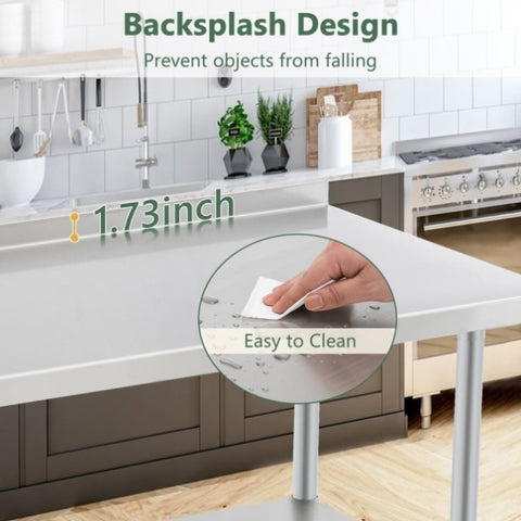 Versatile Applications for Any SettingPerfect for homes, restaurants, hotels, warehouses, workshops, kitchens, garages, and more, this stainless steel table serves as an ideal work surface for a wide range of activities. Whether you're prepping meals, working on projects, or storing equipment, this versatile table will meet your needs and exceed your expectations.