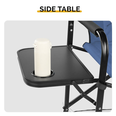 Experience superior comfort and functionality with this 26" Tall Directors Chair, designed for both outdoor adventures and professional use. Whether you're attending an outdoor concert, RV camping, or working as a makeup artist, this chair delivers convenience, comfort, and support. Featuring a spacious seat and a detachable footrest, it provides easy sitting and standing access, while its multifunctional side table, built-in cup holder, and storage pockets create the perfect mobile workstation. Built with a sturdy steel frame and durable 600D Oxford cloth, this chair supports up to 265lbs, offering a reliable and comfortable seating experience.