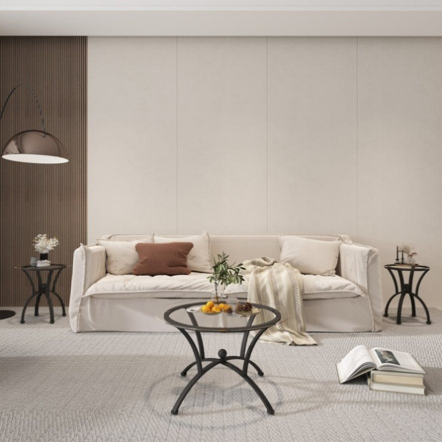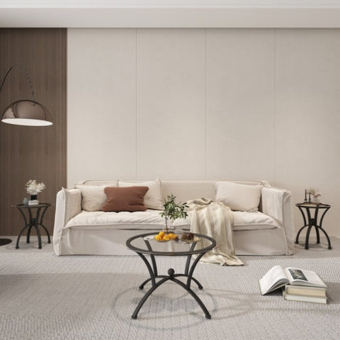 Elegant Tempered Glass Surface: The coffee table set features a sophisticated tempered glass surface that adds a touch of elegance to your living room decor. The durable glass not only enhances the visual appeal but also provides a smooth and easy-to-clean surface for your convenience.