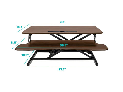 【Spacious Work Area】The top surface measures 31.5” x 15.7” providing plenty of space for single monitor, dual monitor, and laptop + computer monitor setups. Raises up to 19.8 inches and lowers down to 4.3 inches making this ideal for you no matter your height.