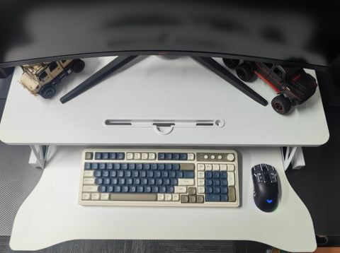- 【STURDY STRUCTURE】Ergonomic design standing desk. The solid structure keeps your desk riser steady and the maximum weight hold up to 30 lbs.