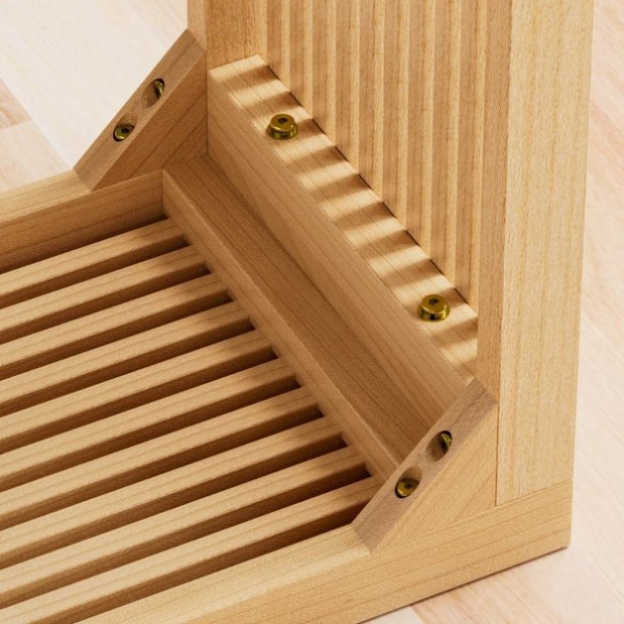 The entryway bench with solid wood triangle to increase its stability and up to 450 pounds.