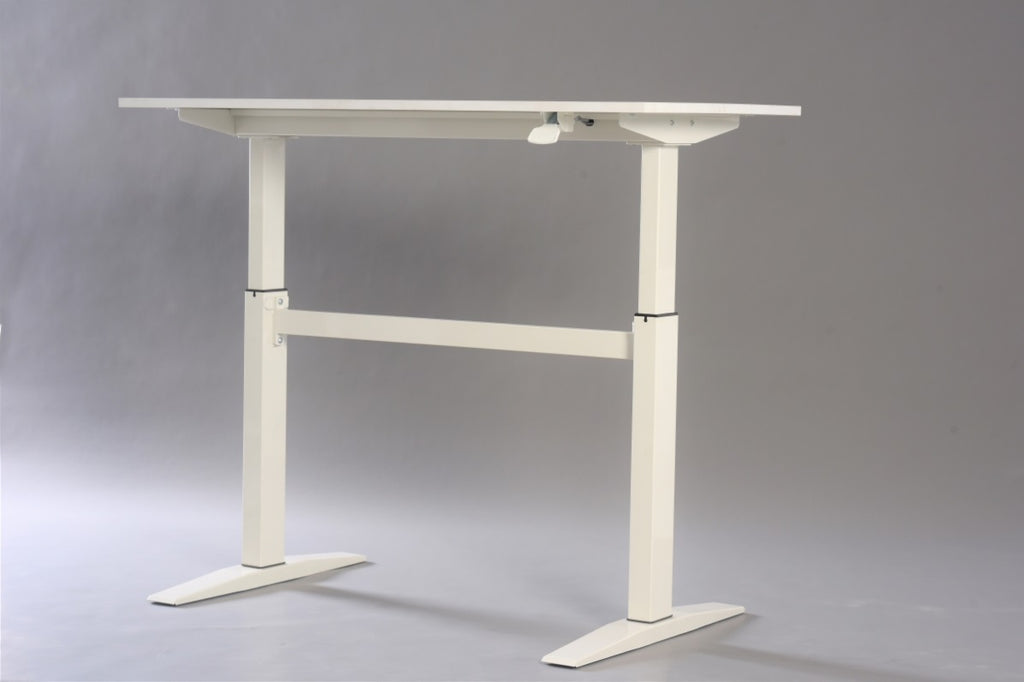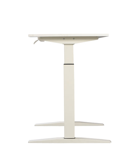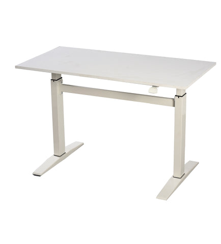 A manual adjustable small desk, 47" Tech Desk Standing, and adjustable desk in white, designed for comfort and style.