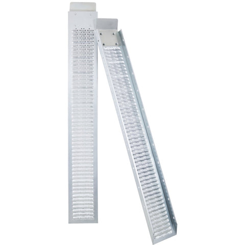 PRODUCT SPECIFICATIONS – Material: Steel. Dimensions: 66" L x 8-7/8" W x 2" H; The set includes two ramps, two foot plates, 2pcs tie straps,1pair gloves and necessary hardware.