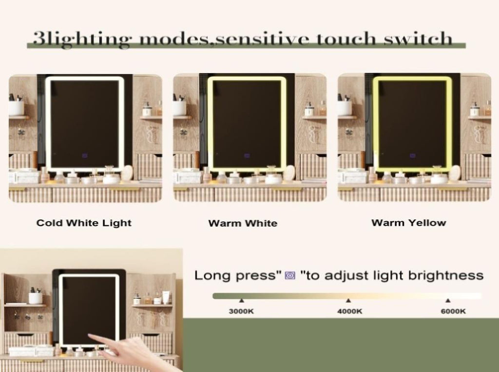 7-Drawer Vanity Desk with LED Mirror & Carved Details, Fluted Makeup Table with Metal Legs and PU 44048891