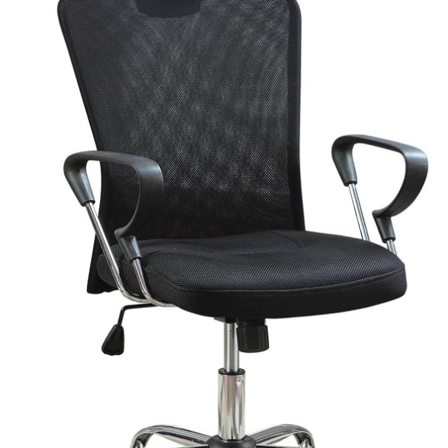 This black office chair offers stylish seating and a sleek silhouette without sacrificing comfort. Its fabric and black mesh finish give it a casually sophisticated look