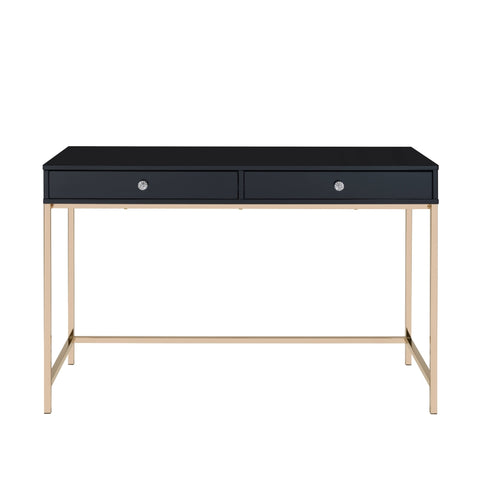 Black High Gloss and Gold 2-drawer Writing Desk B062P184559