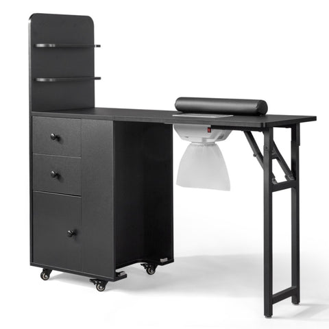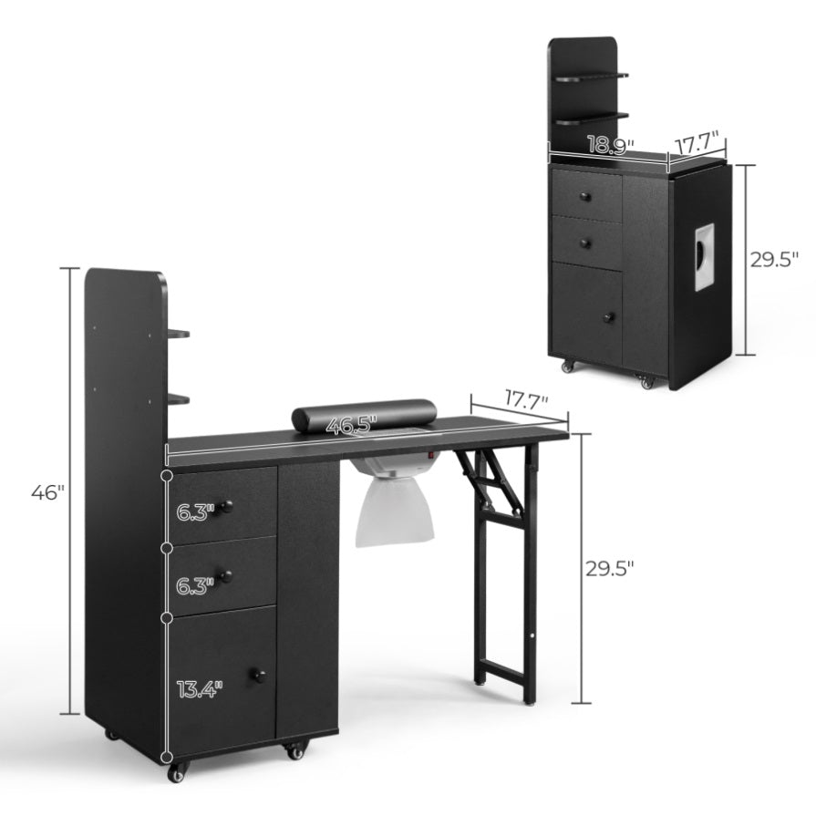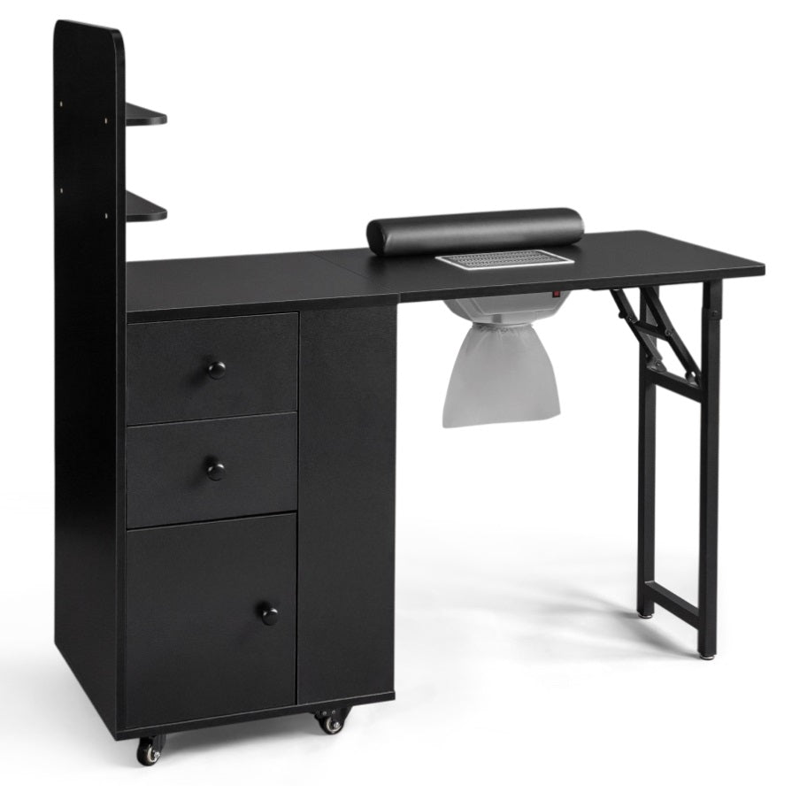 Black MDF Folding Nail Desk with 2 Drawers, Cabinet Door & Storage Shelf 89278371